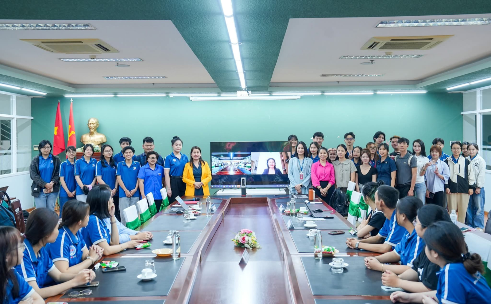 PGS.TS. Nguyễn Quốc Ý, Phó Hiệu trưởng BETU (ngồi giữa) tham dự lễ xuất quân đội tuyển bóng đá sinh viên Việt Nam